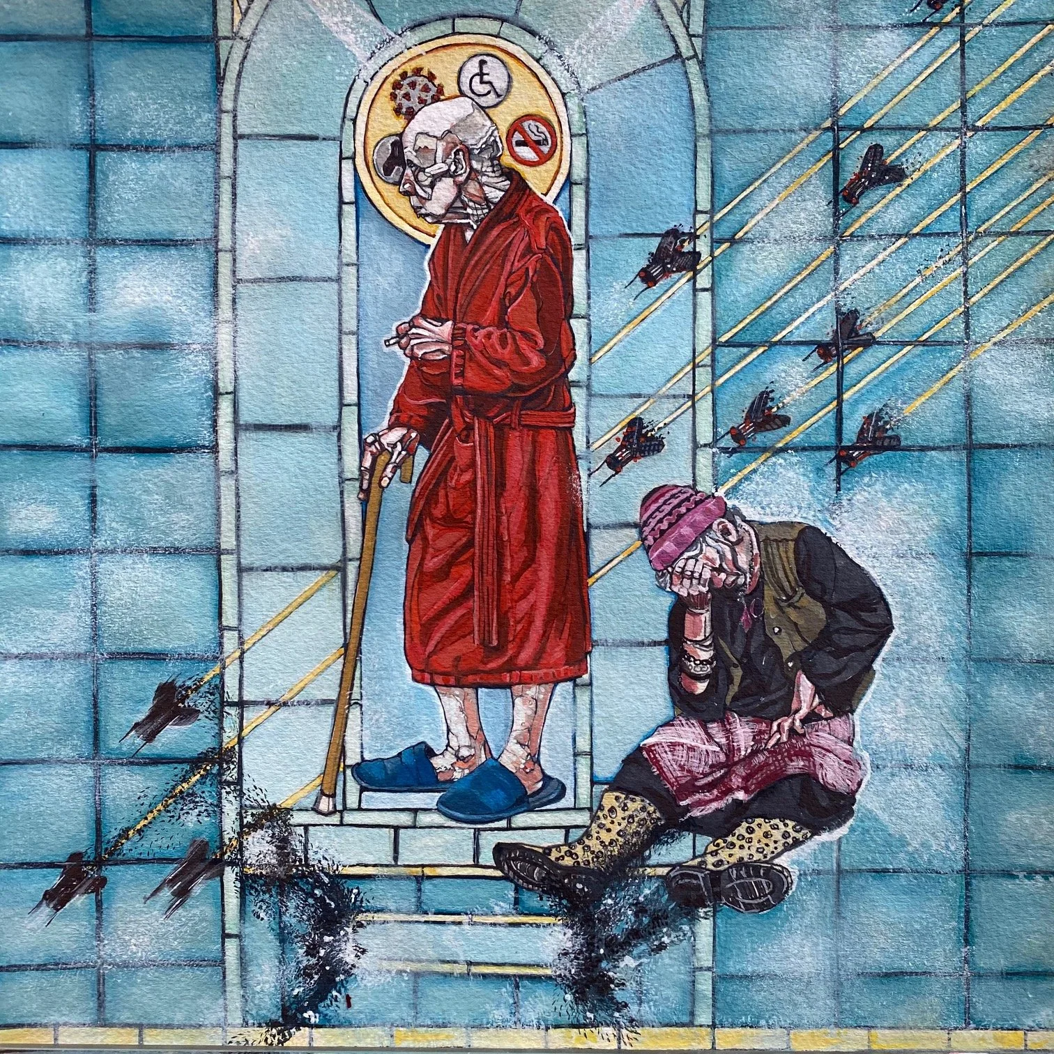PESTILENCE, 2020Pencil & Gouache on Paper Wait, 11" x 10" Perch, 11" x 10" Smoke, 11" x 10" Mitch, 11" x 10" Soothers, 11" x 10" Distancing, 22.5" x 15"